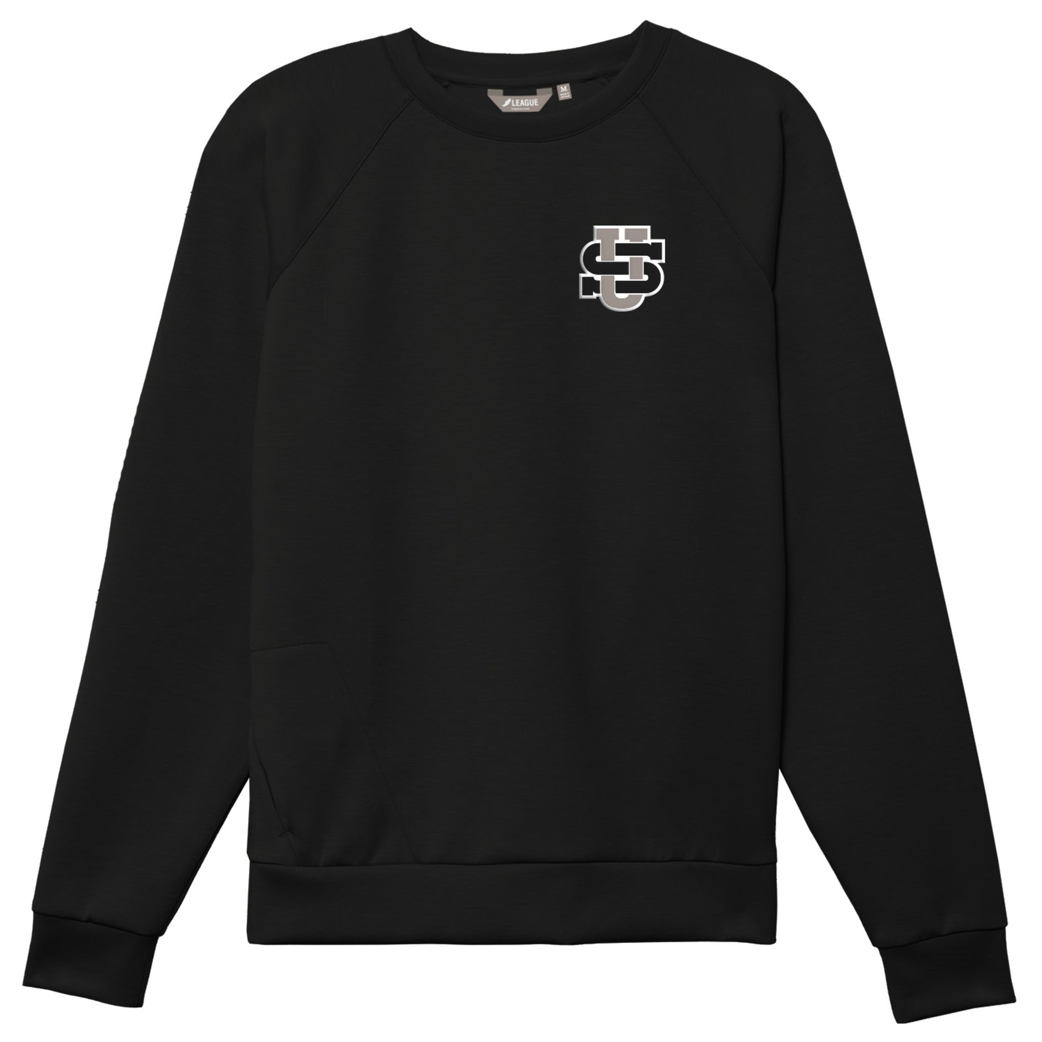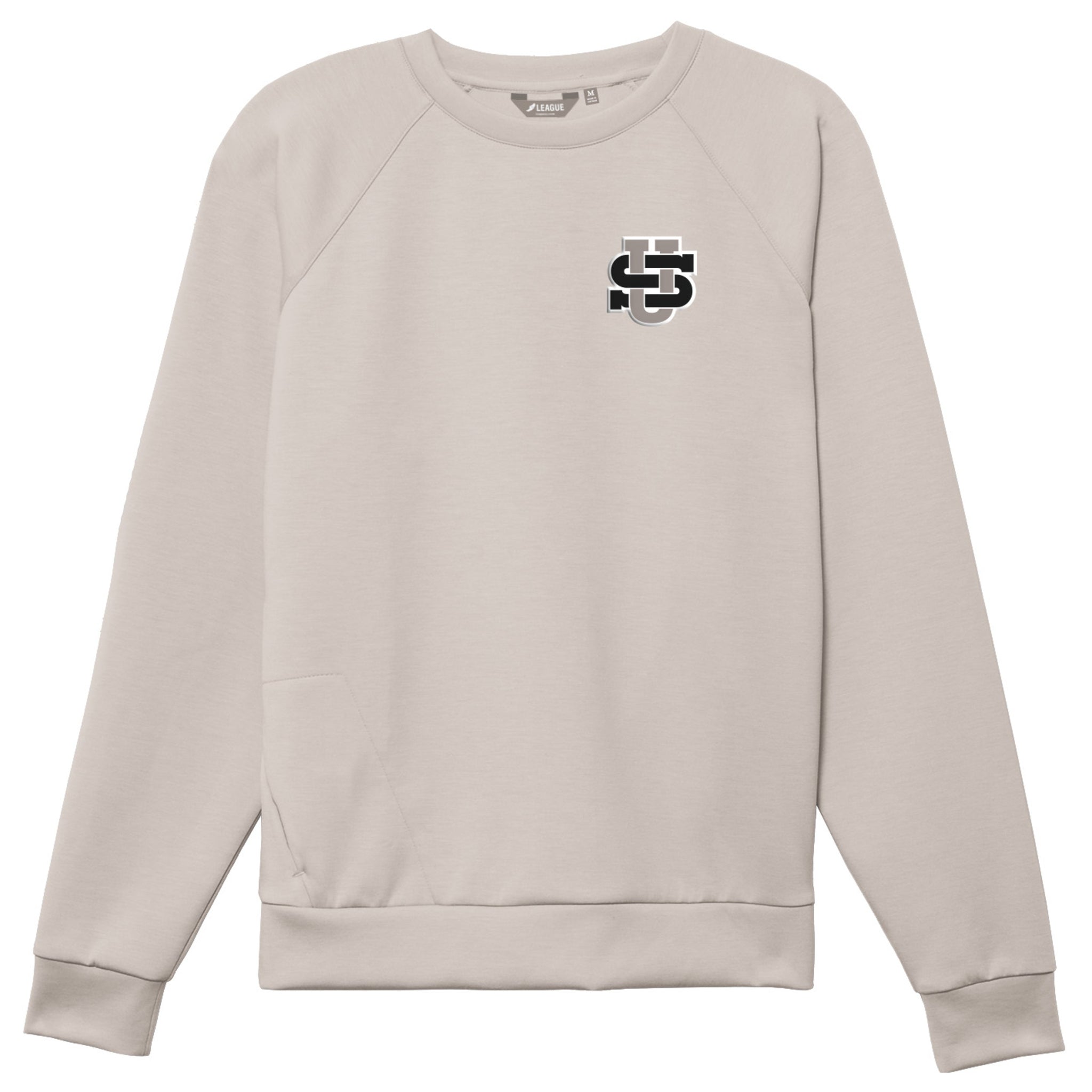 League MON100 Monterey Crew sweatshirt with US interlocking logo in grey and black on the left chest.